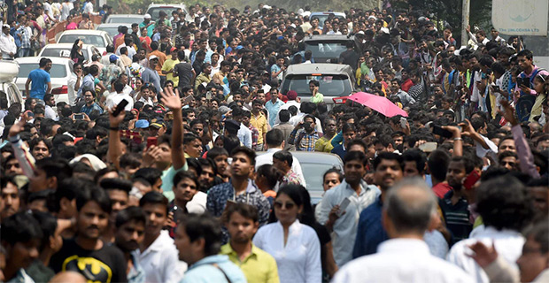 Fans outside the house of Sridevi Kapoor. [Photo: Punit Paranjpe/AFP/Getty Images]