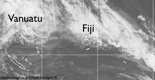 An active trough of low pressure with associated cloud and rain remains slow moving over Fiji.