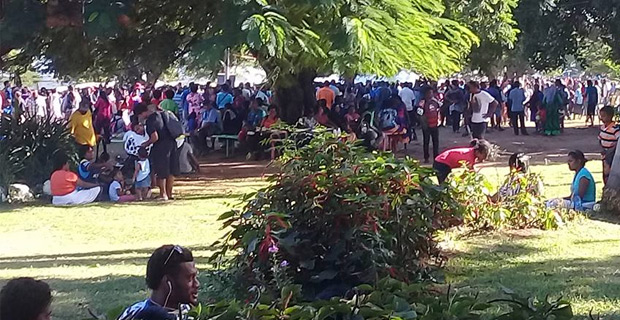 People gathered in Shirley Park in Lautoka to receive assistance under the Homes‑CARE initiative