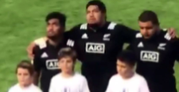 Uluilakepa who is now part of the New Zealand U20 team had a young boy accompany him during the national anthem before realizing that another young boy did not have any player accompany.