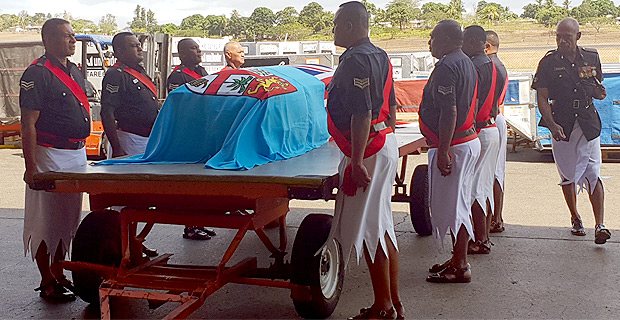 Awaiting the arrival of the late Deputy Commissioner's body at the Nadi International Airport was the current Deputy Commissioner of Police Rusiate Tudravu and senior officers from the Western Division.