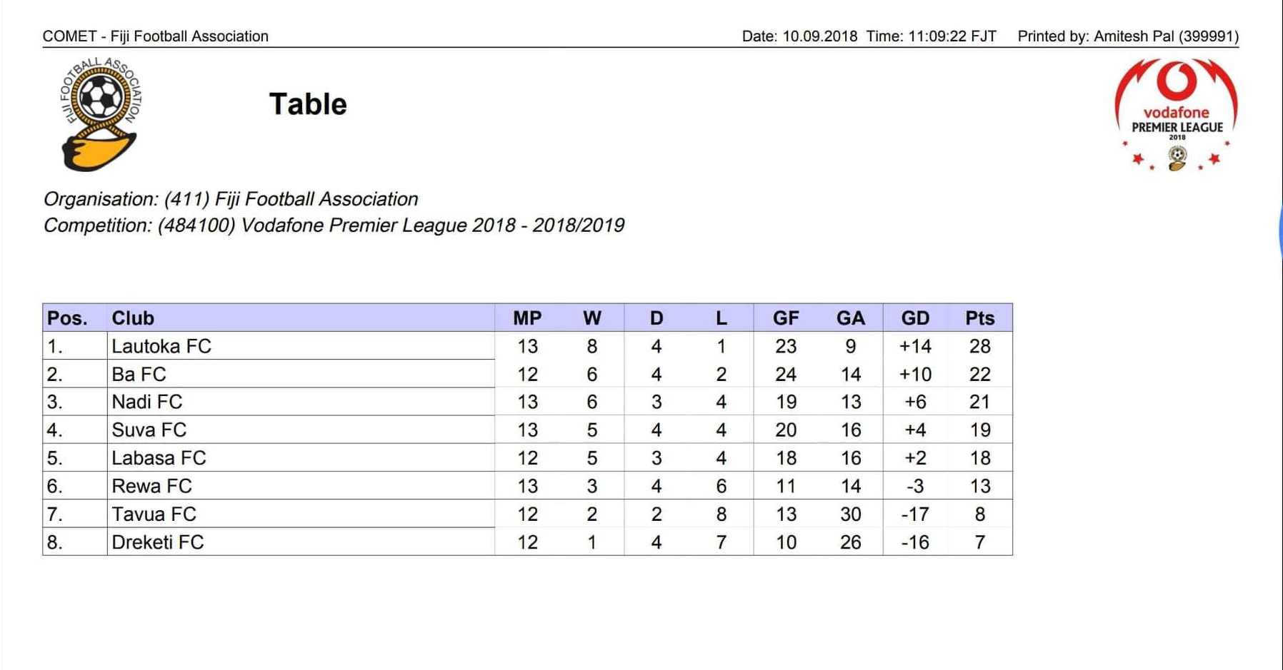 The Men in Black can also win the VPL with 28 points if Rewa beats Lautoka and Ba manages to better their goal difference.