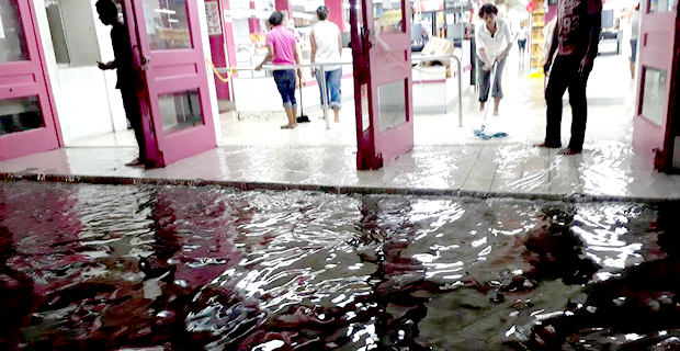 The flash flooding was caused by blocked drains which led to floodwaters entering Max Value supermarket and other small shops along the area.