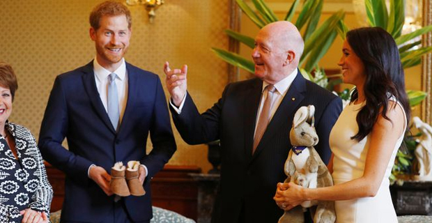Prince Harry and Meghan's first child will be joined in its nursery by an Aussie icon, after the Royal couple were showered with souvenirs as their tour officially began in Sydney.