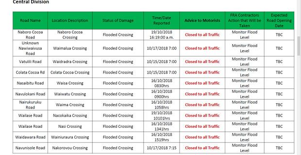 Meanwhile, 13 roads are closed in the Central Divison, four roads are closed in the Western Division and a road is closed in the Northern Division due to flooding.