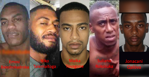 Emosi Baledrokadroka, Niko Talemaitoga, Maika Tovagone, Suliano Rokosuka and Jonacani Qalova escaped from the Suva Courthouse Cell Block..