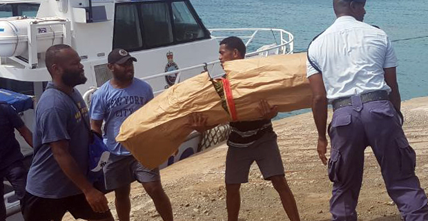The suspected marijuana being loaded onto the police boat [Photo: Fiji Police Force]