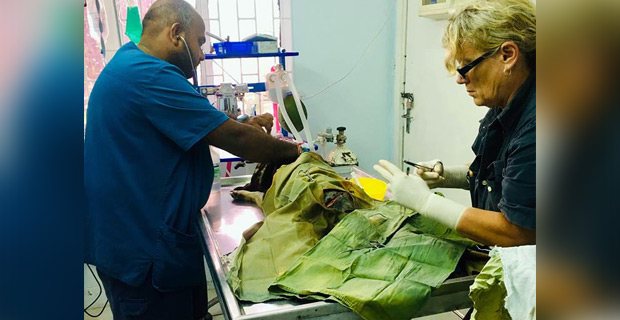 SPCA Fiji Vets de-sexing dog