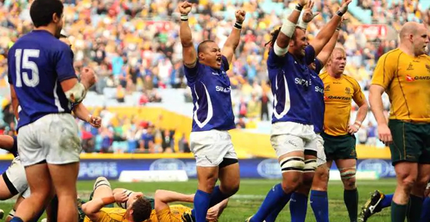 Samoa celebrate their famous 2011 triumph over the Wallabies in Sydney [Photo: Fox Sports]
