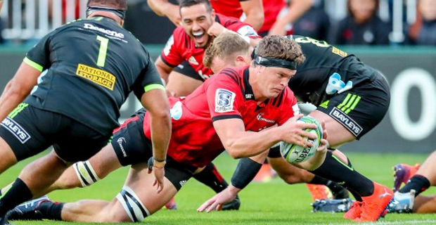 Crusaders: David Havili, Braydon Ennor, Jack Goodhue, Ryan Crotty, George Bridge, Brett Cameron, Bryn Hall, Whetukamokamo Douglas, Matt Todd, Jordan Taufua, Samuel Whitelock (captain), Quinten Strange, Owen Franks, Codie Taylor, George Bower. Reserves: Andrew Makalio, Harry Allan, Michael Alaalatoa, Luke Romano, Tom Sanders, Ere Enari, Mitchell Hunt, Will Jordan.