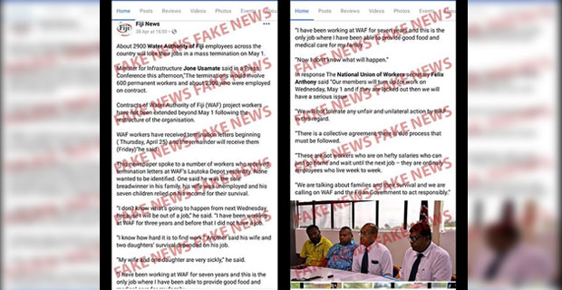 Water Authority of Fiji General Manager Legal Talei Ligairi says contrary to the Union’s claim, on April 1 workers were given a reminder that their contracts were coming to an end on April 30.