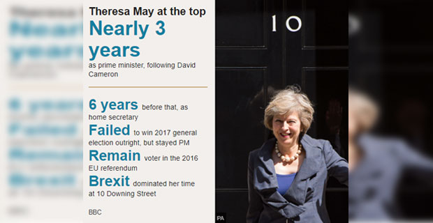 May said she would continue to serve as PM while a Conservative leadership contest takes place.