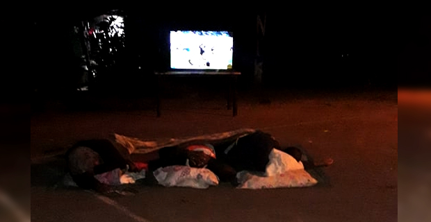 They put their TV out at the roundabout and these people were seen lying on the road throughout the night and cheering for the team as the national side went on to win the HSBC World Rugby 7s series title.