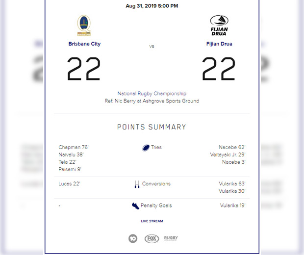 The Fiji Airways Fijian Drua who are defending champions of the National Rugby Championship in Australia drew 22‑all with Brisbane City in their opening match at Ashgrove Sports Ground in Brisbane last night.